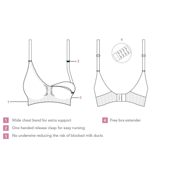 En bh-förlängare som förlänger måttet under bysten med upp till 4 cm medföljer varje amningsbehå.