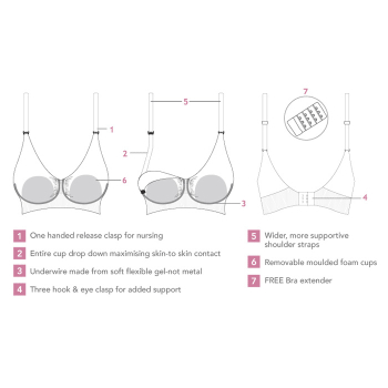 Carriwell vadderade amningsbehå har mjuka, tunna vadderade kupor som ger en fin form och lyft till din byst. De formpressade kuporna ger extra stöd och är ett utmärkt val för den stora bysten. De tunna formade vadderingarna är urtagbara.