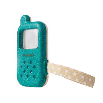 En egen mobiltelefon garanterat strålningsfri. Ekologisk från PlanToys. Med knappar att trycka på, handledsrem och en skärm som är förstoringsglas. Tränar barnets visuella förmåga, finmotoriken och fantasin. På knapparna finns symboler. Ring hem, till mamma eller pappa, till kompisen eller till din djurkompis.